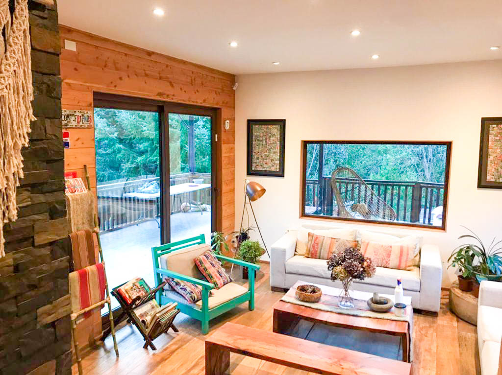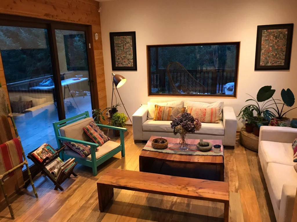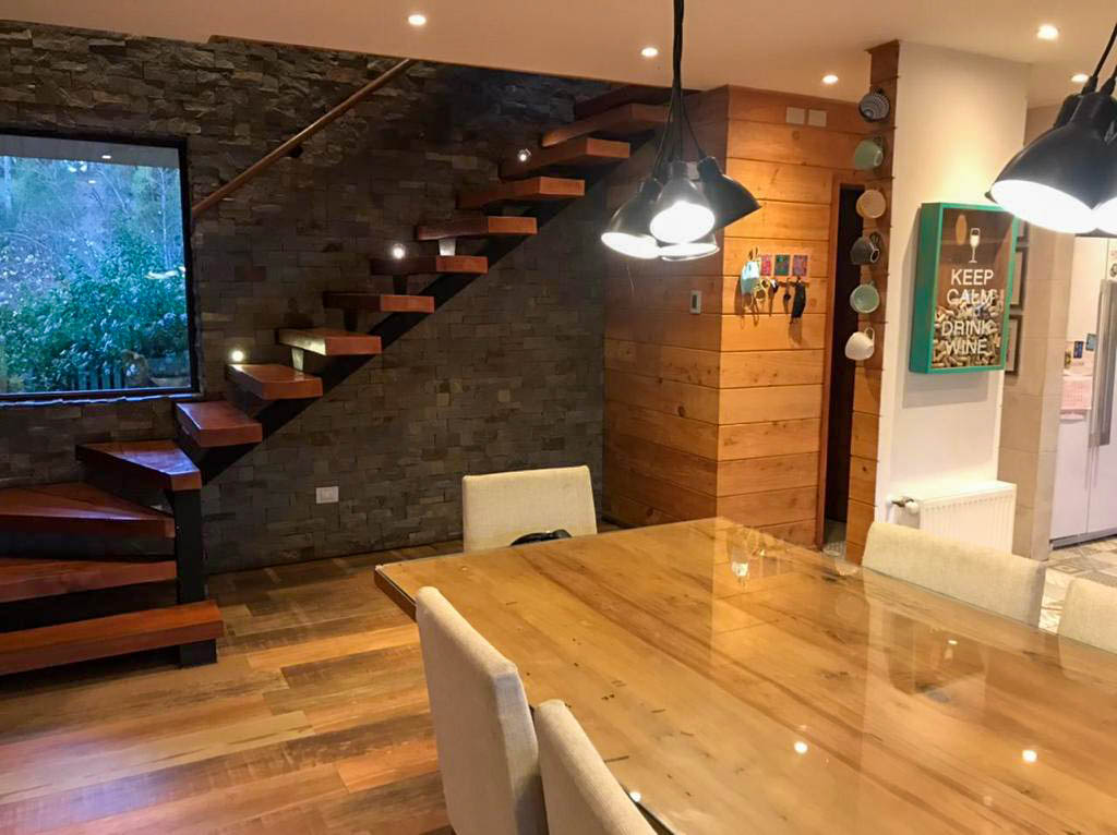recubrimiento interno ciprés y piedra laja dimensionada.